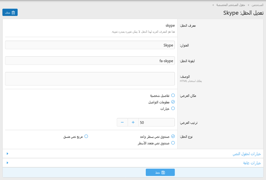 صورة اضافة اﻻيقونة عند تعديل او اضافة حقل مستخدم جديد:
