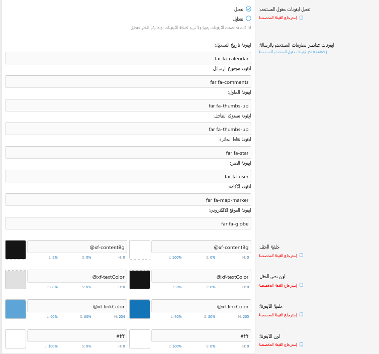 صورة اضافة ايقونات للحقول اﻻفتراضية مع خيارات اﻻضافة من تفعيل وتعطيل والوان اﻻيقونات: